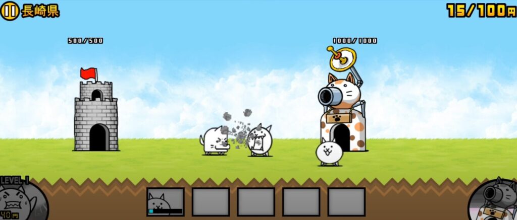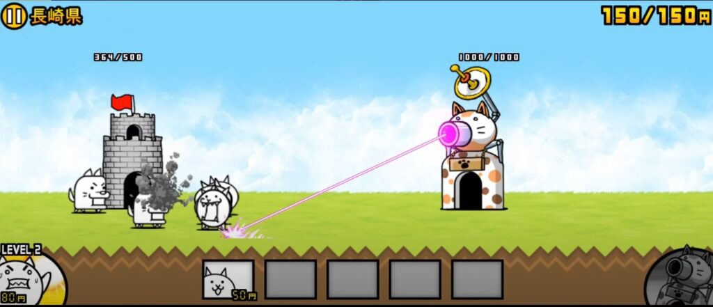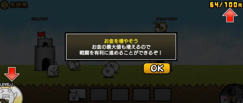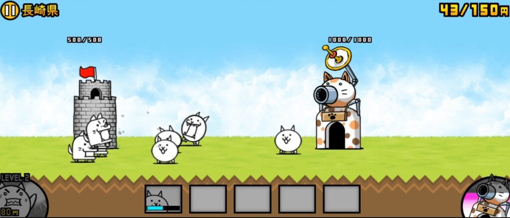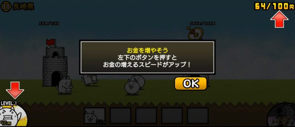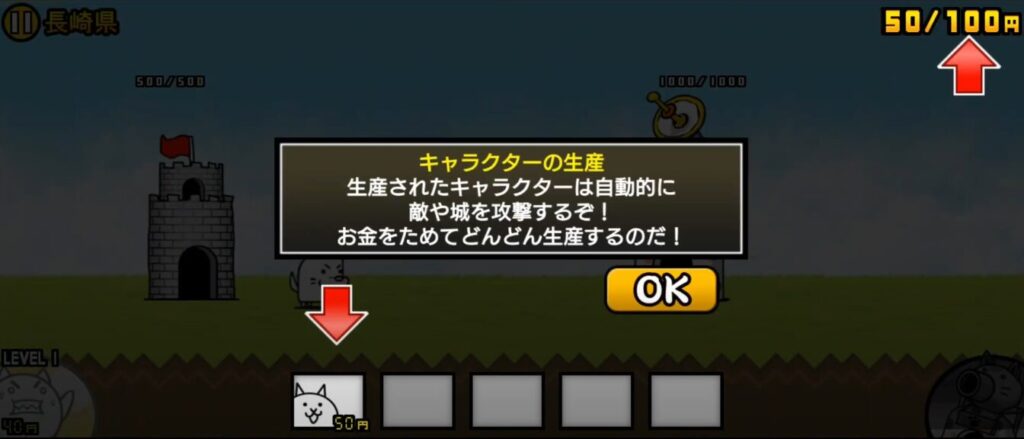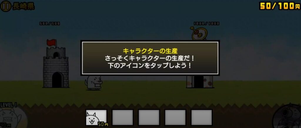 ネコは50円で生産できるのでお金が貯まったらタップすることで生産することができます。