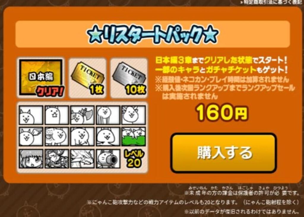 「久しぶりににゃんこ大戦争を再開しようかな?」「もっと効率よく進めたい!」と考えている方に朗報です。ゲームへの復帰やスタートダッシュを強力にサポートしてくれる、**超お得な「リスタートパック」**について、その概要と中身、そして買うべき理由を徹底解説します!